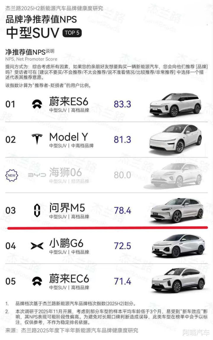 但最近杰兰路出的2025年度下半年新能源汽车品牌健康度研究报告,问界M5的上榜,倒是有点让喵哥意想不到,这款问界的首款车型,其实是被很多人低估的好车,能买它的,多半是真懂车的人。
